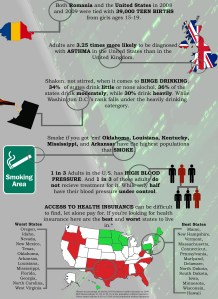 I made a visual for some of the interesting statistics that the CDC provided in their “Vital Signs” report (http://www.cdc.gov/vitalsigns/Issues.html). Theres more information provided in the actual report, which I suggest everyone read. However, until then, please enjoy!