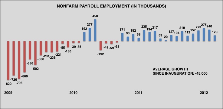 Since the President’s inauguration, growth in payroll employment has averaged a loss of 45,000 jobs per month. The labor market has yet to fully recover from the economic recession and current growth is not enough to sustain a growing population.