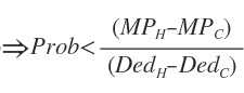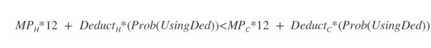 That is, the monthly premium for the HDHP plan multiplied by 12 months in a year plus the price of the HDHP deductible multiplied by the probability of paying the deductible must be less than the same measures for a conventional health insurance plan. If this relationship holds, the shift will occur. If we solve this relationship for the optimal probability of switching plan types, we get the following: