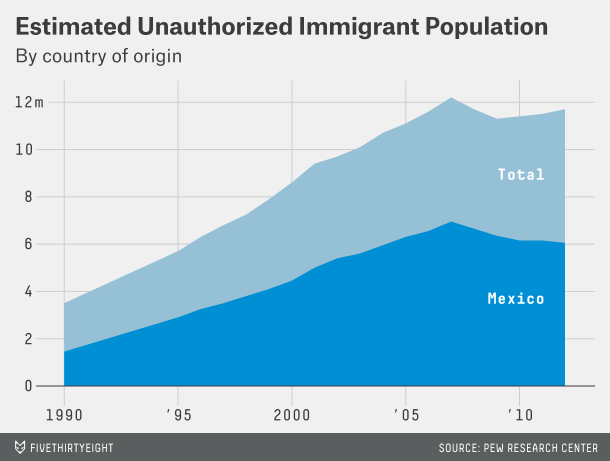 For this week’s blog post, my policy director, Conor Ryan, asked me to find and analyze a few charts from an Internet source. He also requested that I write up a short summary and analysis for each of these charts. I chose four charts from the article “Immigration Is Changing Much More Than the Immigration Debate,” an article from the Political Blog FiveThirtyEight, which focuses on both election predictions and policy analysis.