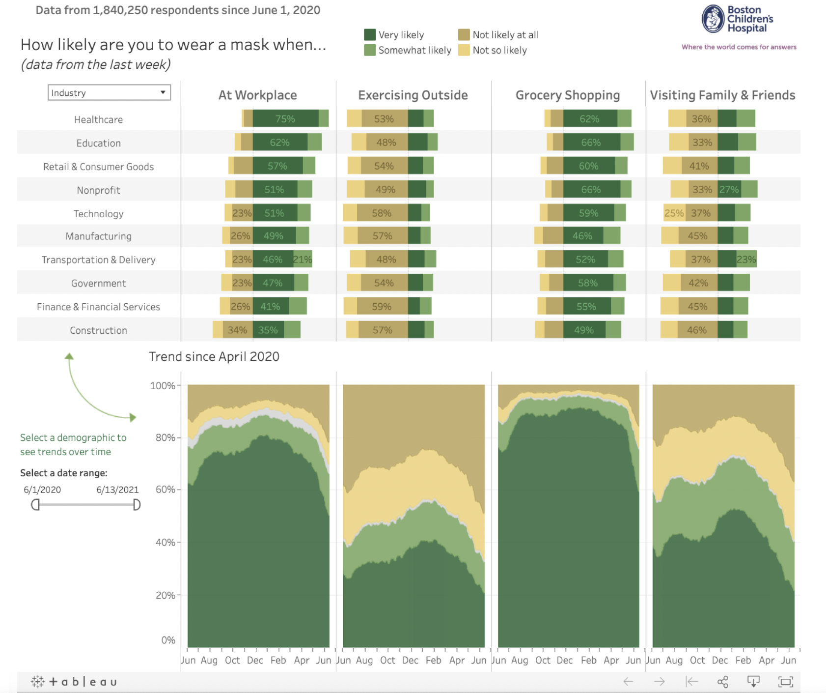 It has outstanding visualization capabilities and has a great performance despite the size of data set, it is easy to use and comes with a healthy community and forum and offers great connectivity to multiple data sources. Physicians, researchers, medical professionals, pharma companies, and all other healthcare stakeholders use tableau. Below is an example of a tableau visualization.