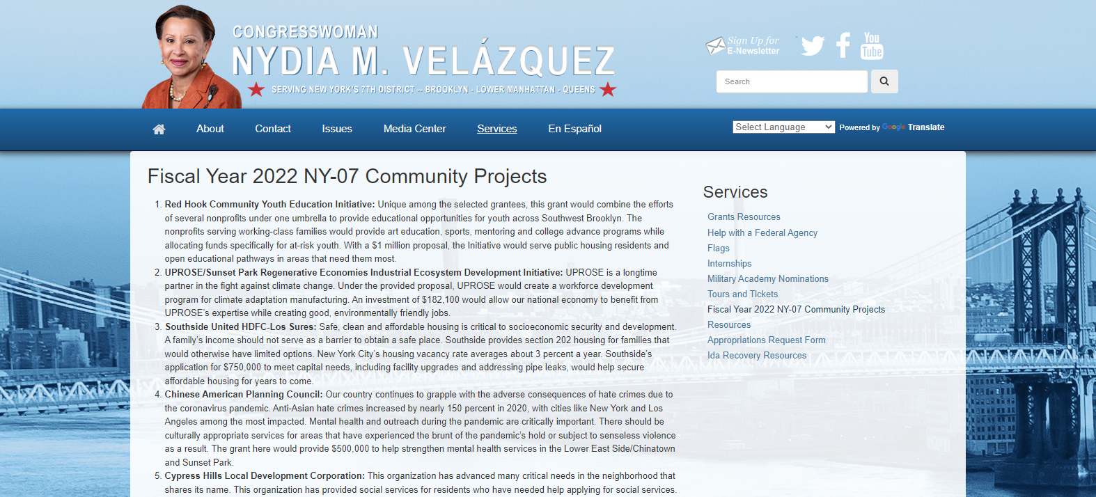 In bringing back earmarks, Rep. DeLauro, Sen. Leahy, and congressional leadership have promised an extra level of transparency. Each member is required to post their earmarks, now termed “community spending requests,” on their official websites, and the full text of the act is available at the webpage of the House. However, these postings only give the illusion of transparency and prevent anyone from easily gaining a big-picture look at the scope of the spending. For example, while information has been posted to each member’s website, the formatting is not universal. This might not be a problem if one only intends to research the earmarks requested by one member, but becomes an issue if one intends to compare the earmarks of two or more members. Below are the randomly chosen webpages of Rep. Troy Balderson (R-OH-12) and Rep. Nydia Velázquez (D-NY-07) as examples: